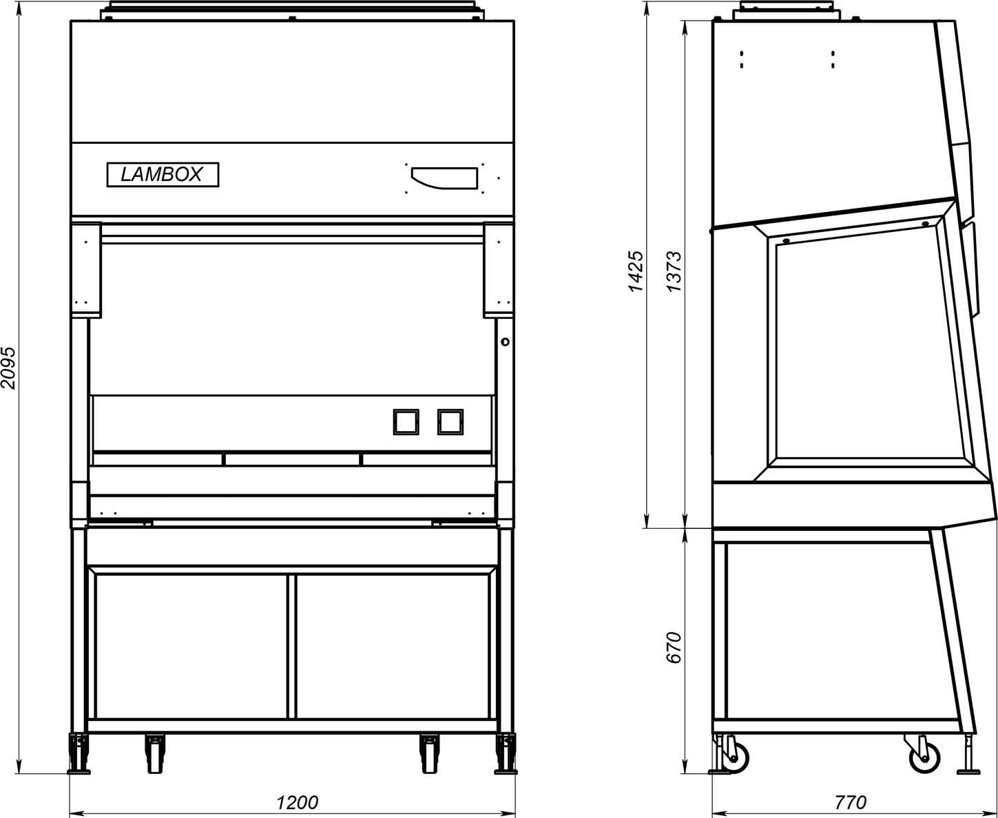 - Размеры рабочей камеры ламинарного бокса (ШхГхВ), мм: 1105x610x700